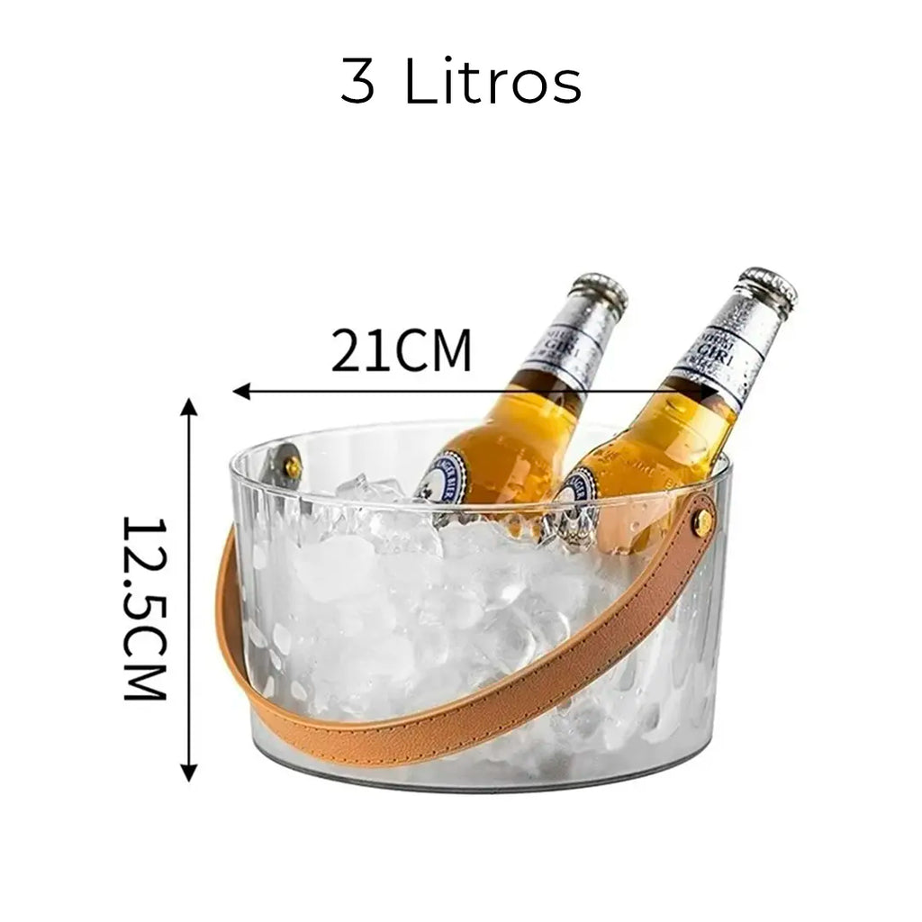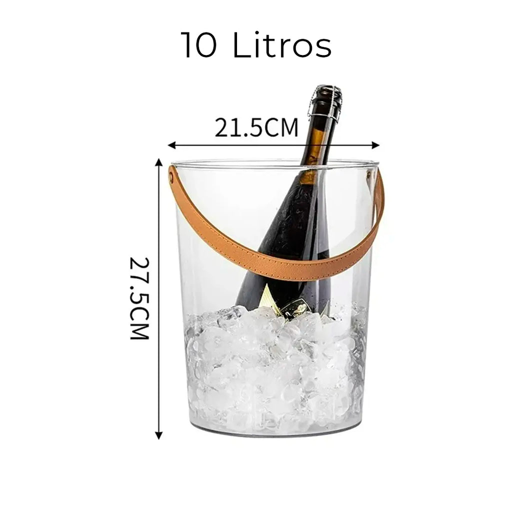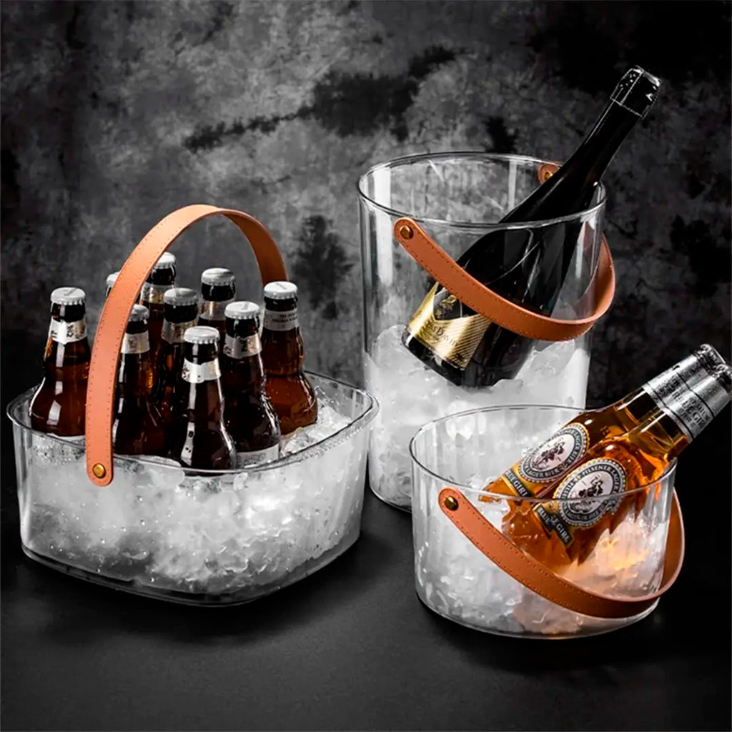 Impressione seus convidados com o elegante Balde de Gelo Acrílico com Alça de Couro. Combinando design moderno e funcionalidade, este acessório é a escolha ideal para manter suas bebidas sempre geladas com sofisticação.