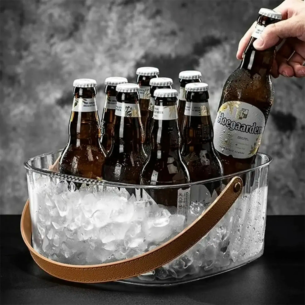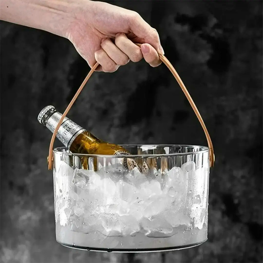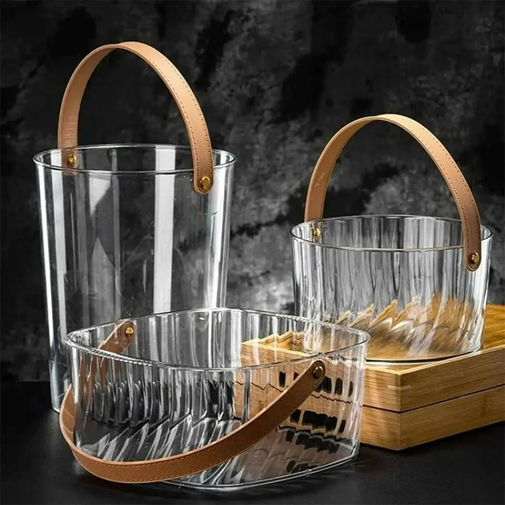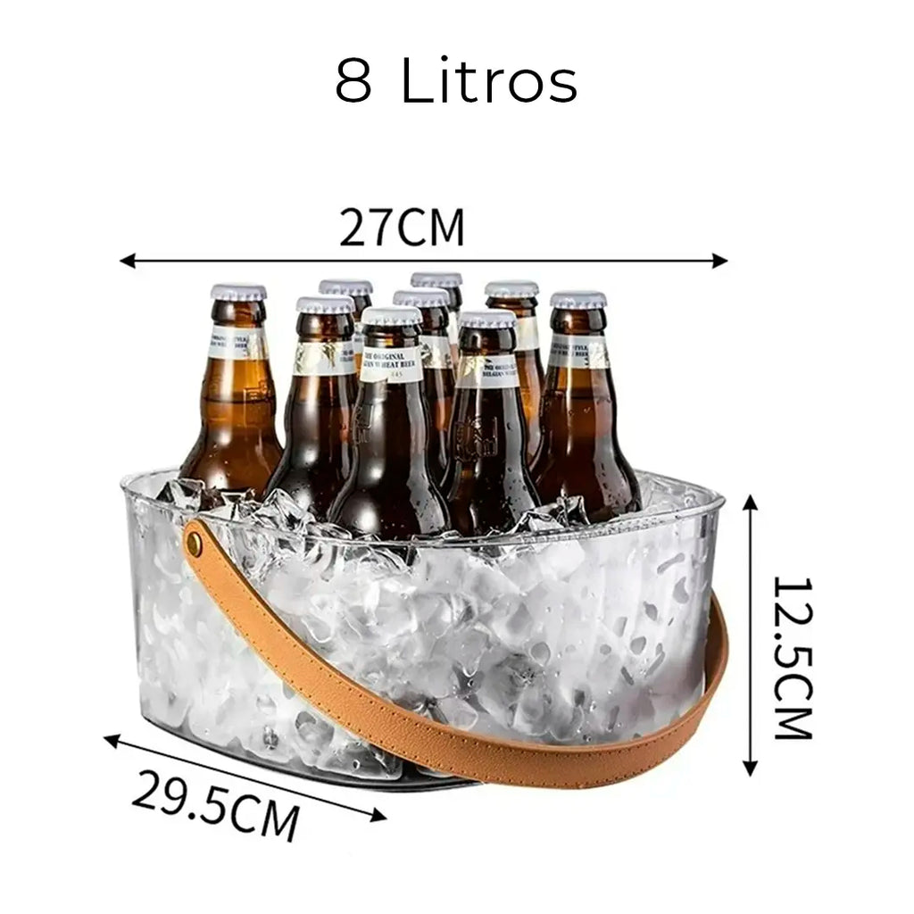 Impressione seus convidados com o elegante Balde de Gelo Acrílico com Alça de Couro. Combinando design moderno e funcionalidade, este acessório é a escolha ideal para manter suas bebidas sempre geladas com sofisticação.