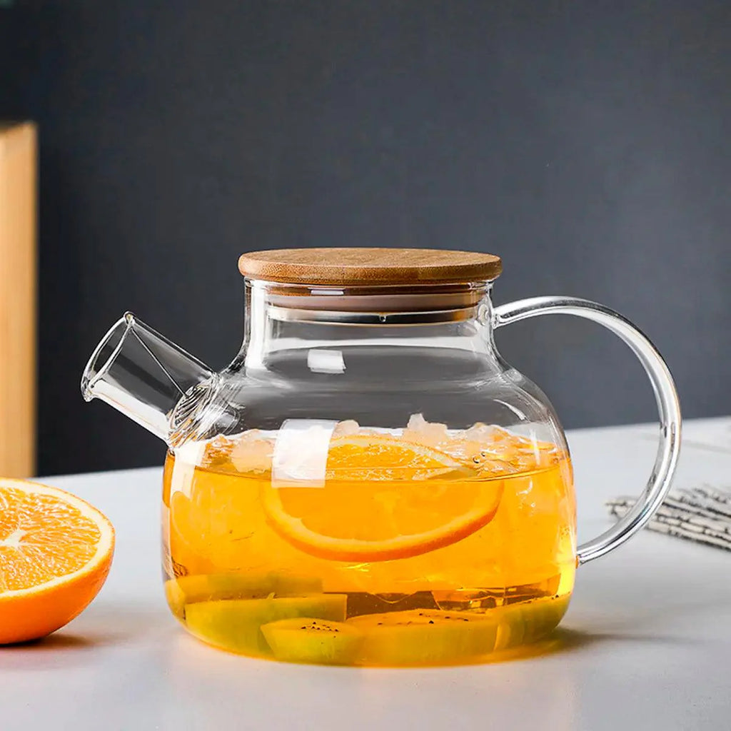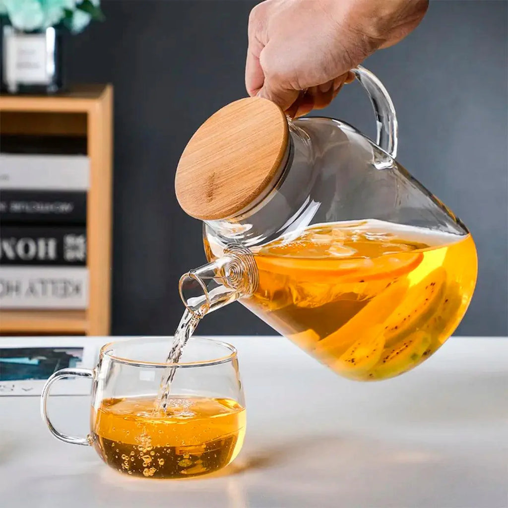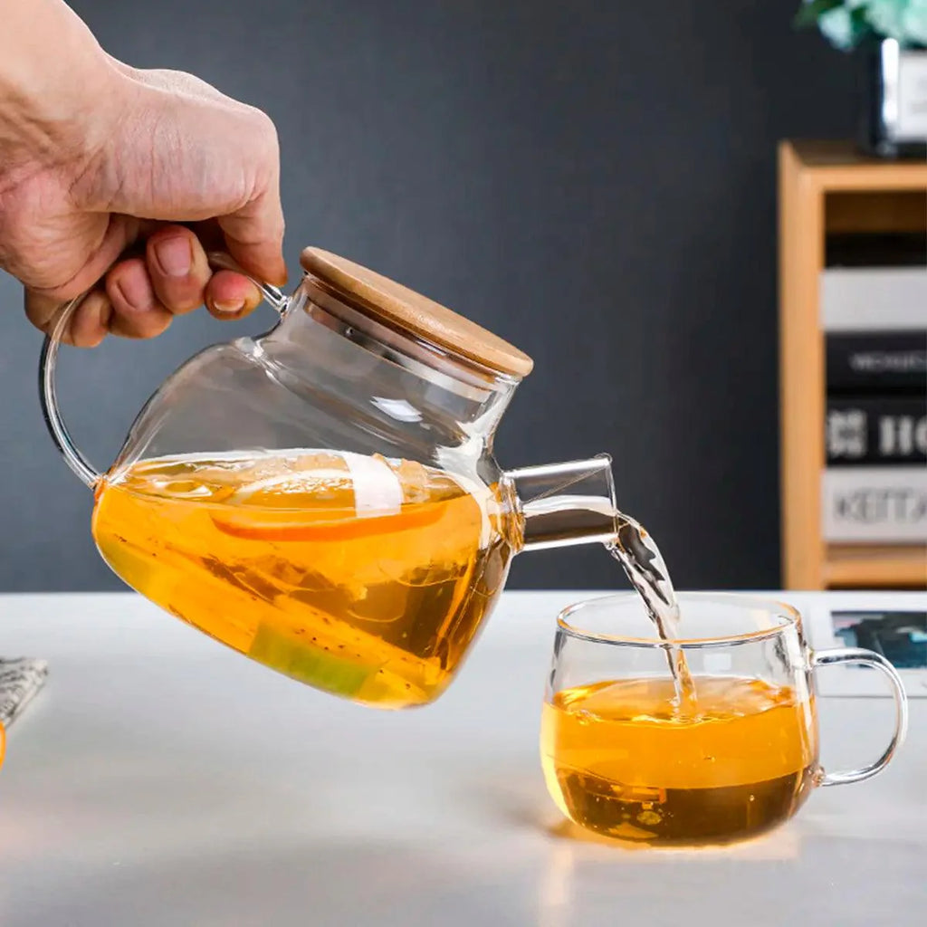 A Chaleira de Vidro com Tampa de Bambu é a combinação perfeita de funcionalidade e estilo para sua cozinha. Feita de vidro borossilicato resistente ao calor e equipada com uma tampa de bambu com vedação de silicone, esta chaleira é prática para ir ao fogo, suportando temperaturas de até 150 graus. Além disso, ela adiciona um toque de elegância e sofisticação à sua mesa.