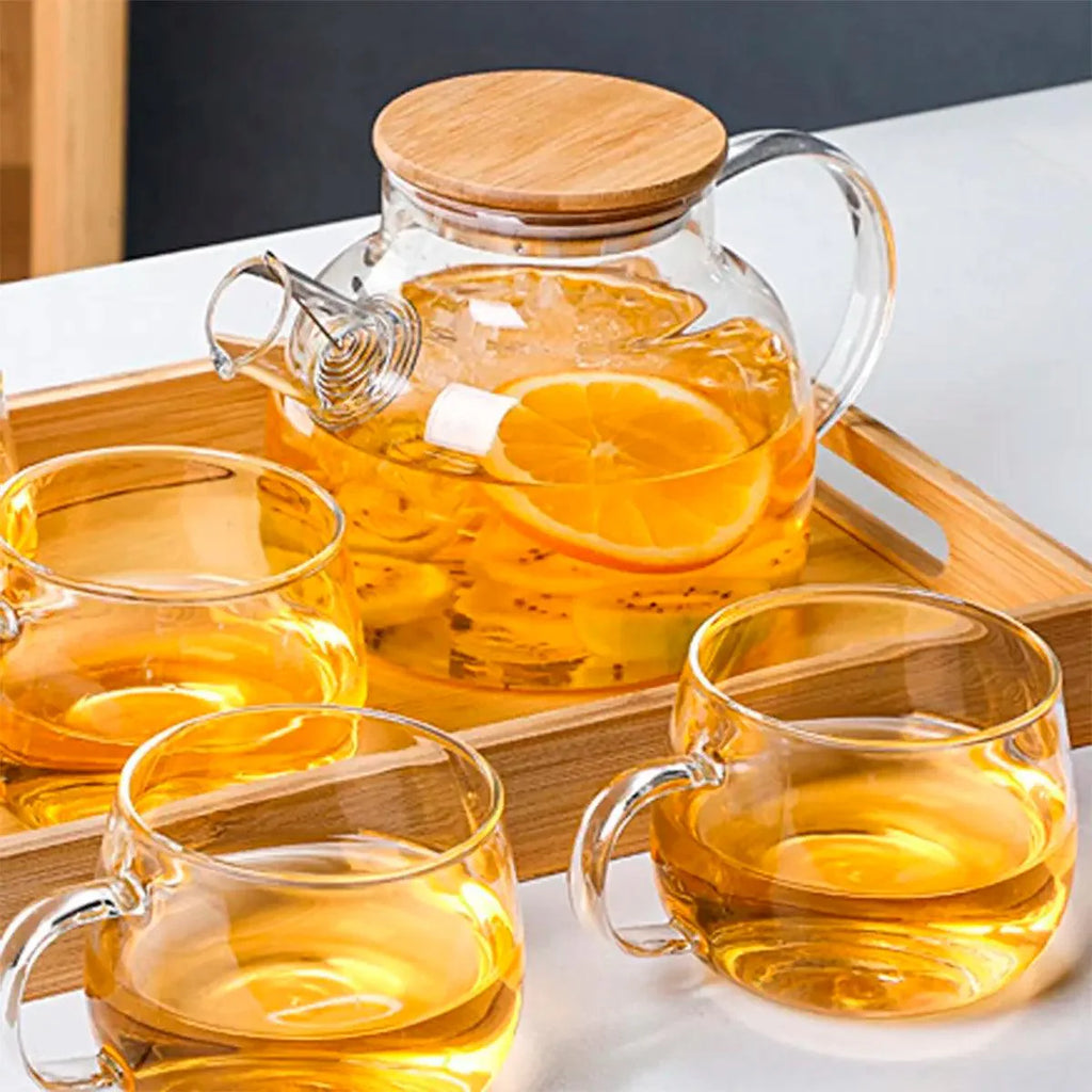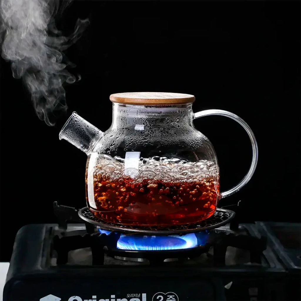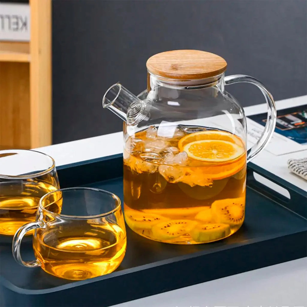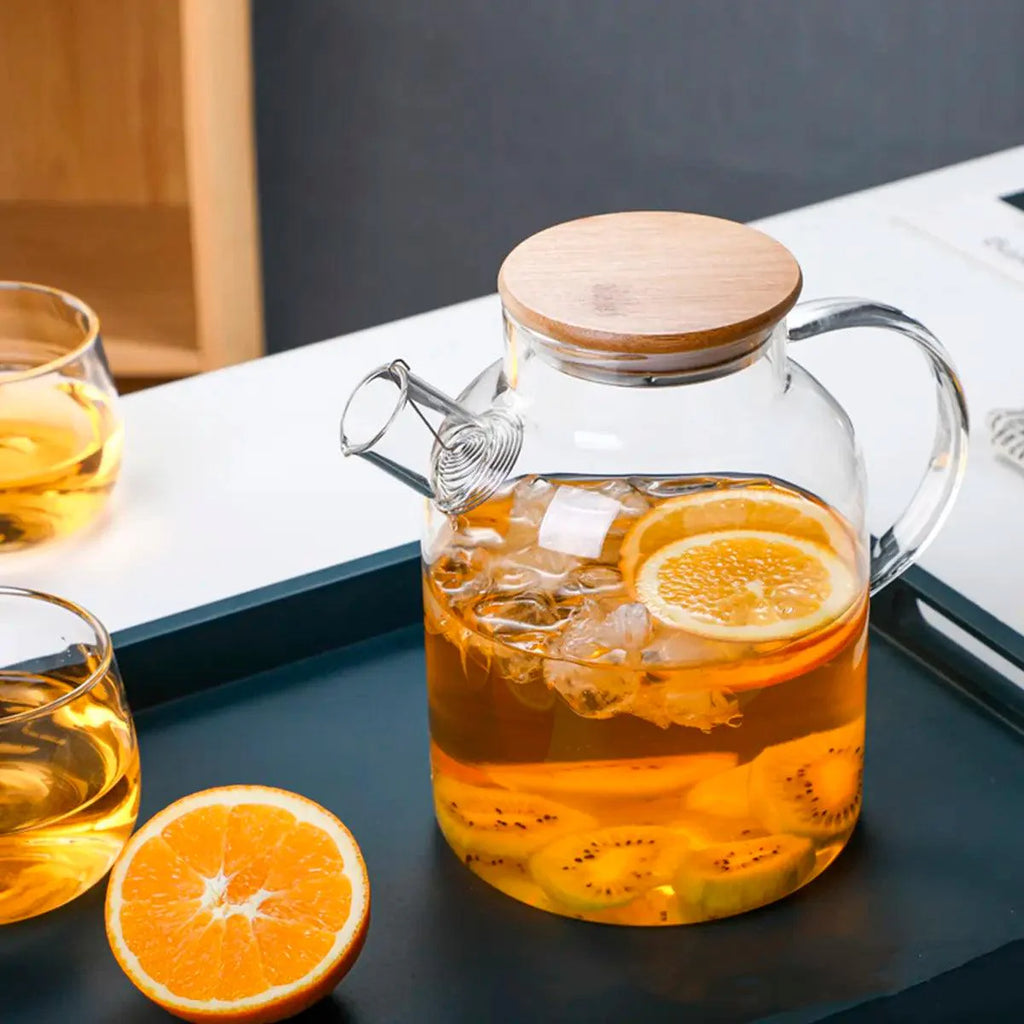 A Chaleira de Vidro com Tampa de Bambu é a combinação perfeita de funcionalidade e estilo para sua cozinha. Feita de vidro borossilicato resistente ao calor e equipada com uma tampa de bambu com vedação de silicone, esta chaleira é prática para ir ao fogo, suportando temperaturas de até 150 graus. Além disso, ela adiciona um toque de elegância e sofisticação à sua mesa.