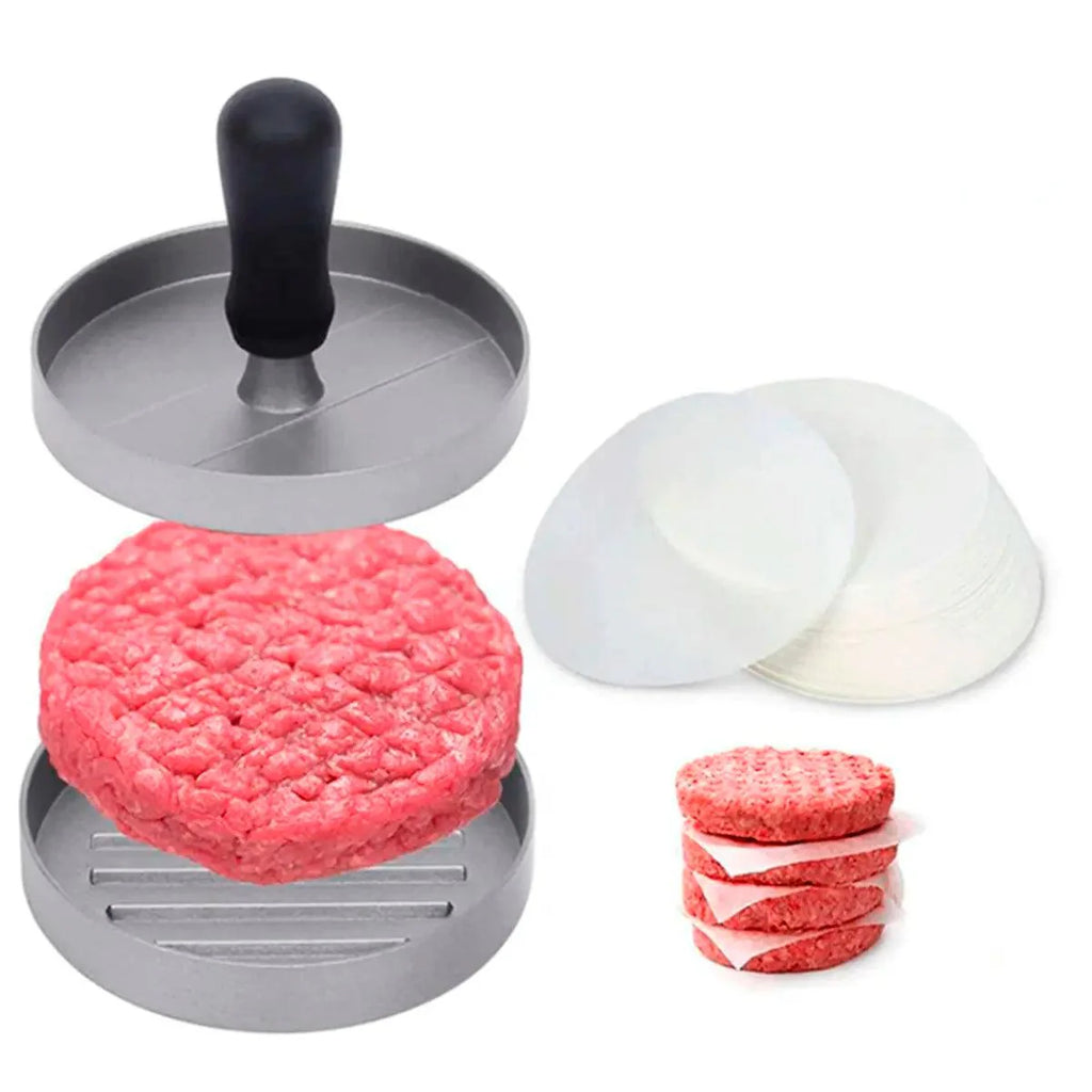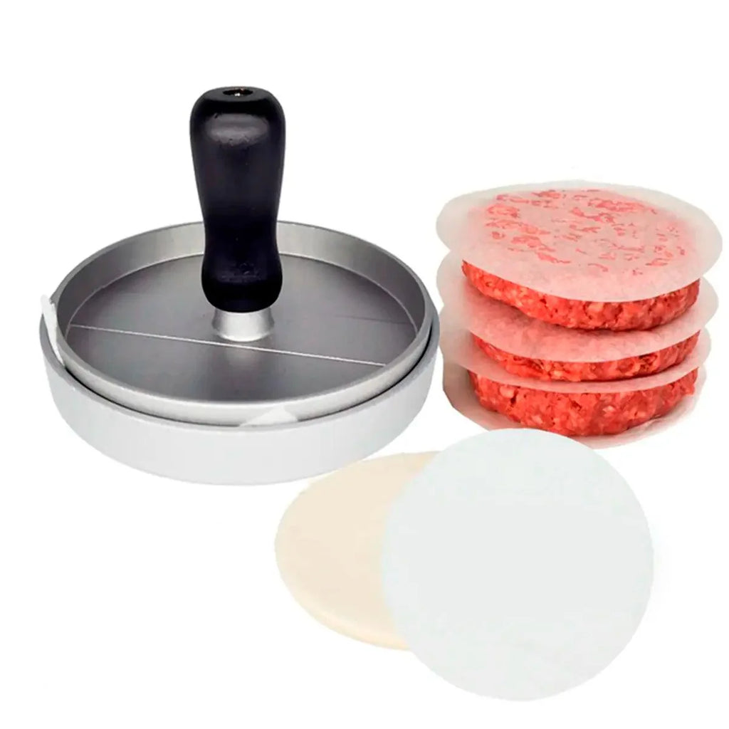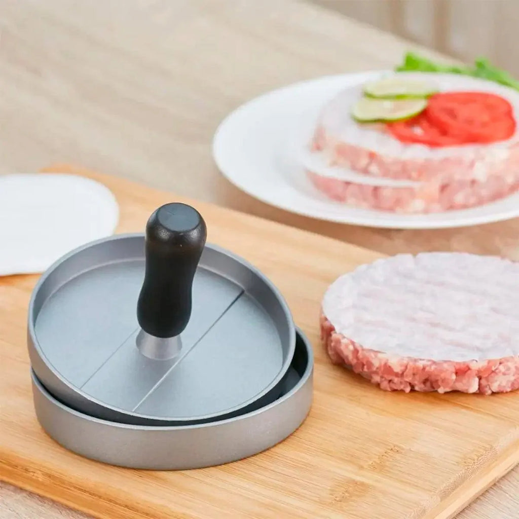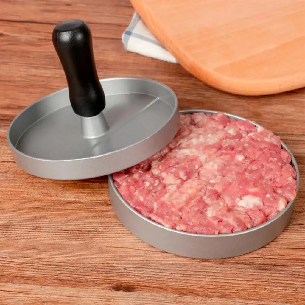 Desfrute da praticidade de moldar seus próprios hambúrgueres artesanais em casa com a Forma Modeladora de Alumínio para Hambúrguer Artesanal.
