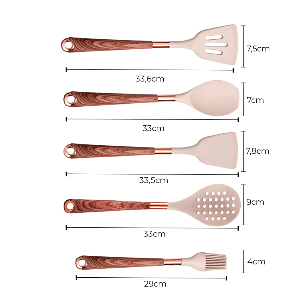Kit Utensílios de Cozinha de Silicone Rose Gold (6 utensílios) ou
