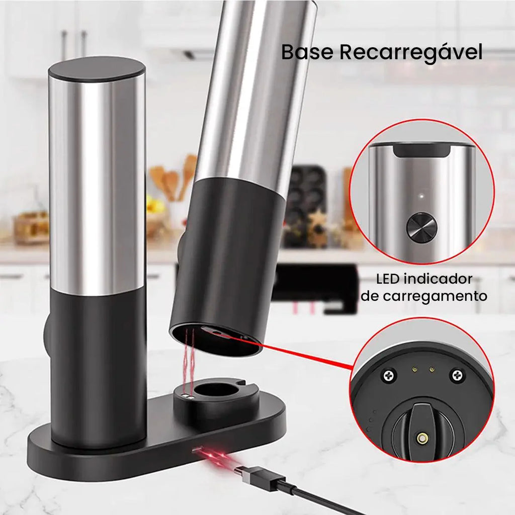 1 Moedor de Pimenta e Tempero Elétrico ou 1 Kit com 2 unidades + Base