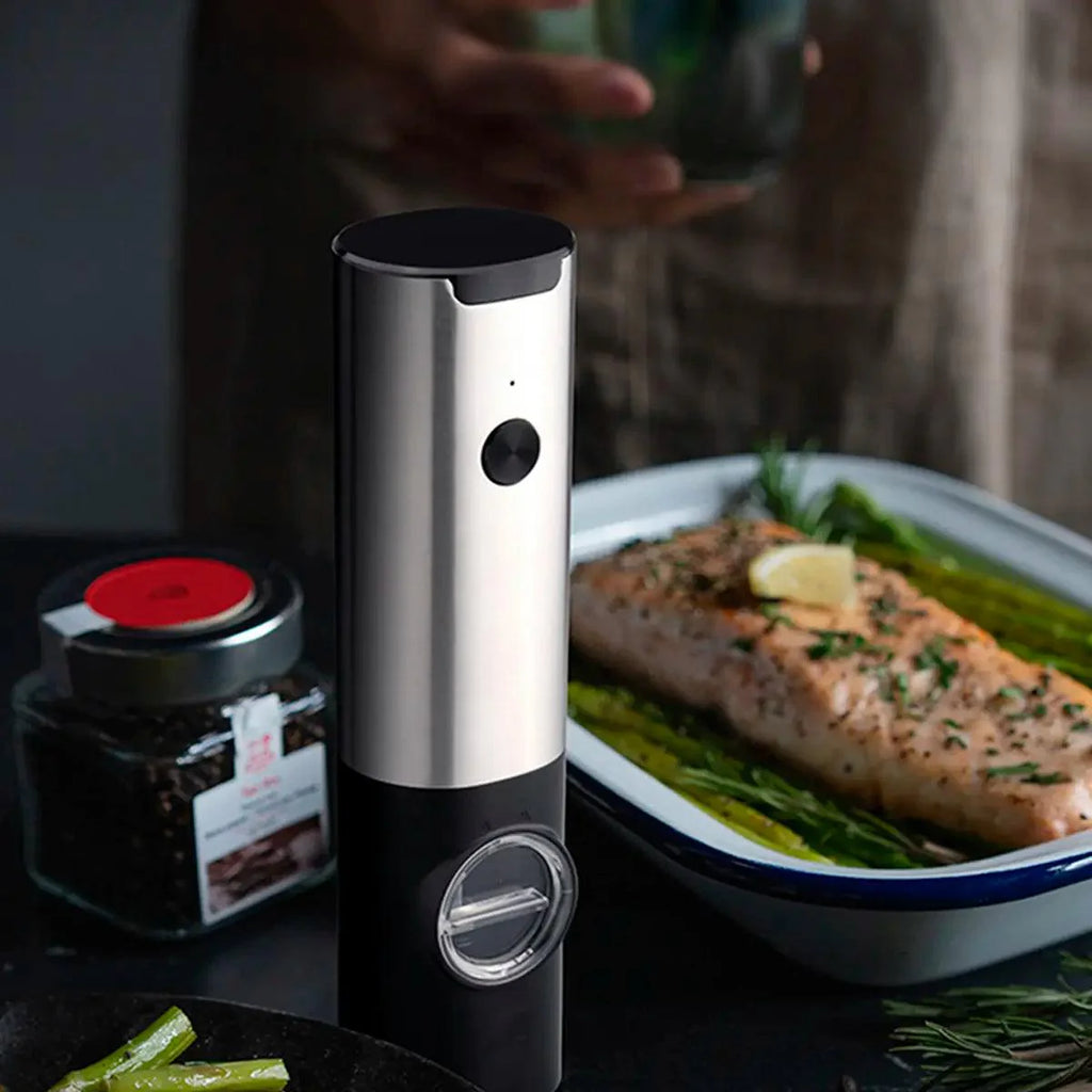 Dê um toque especial às suas refeições com o Moedor de Pimenta e Tempero Elétrico – sabor e praticidade ao seu alcance!