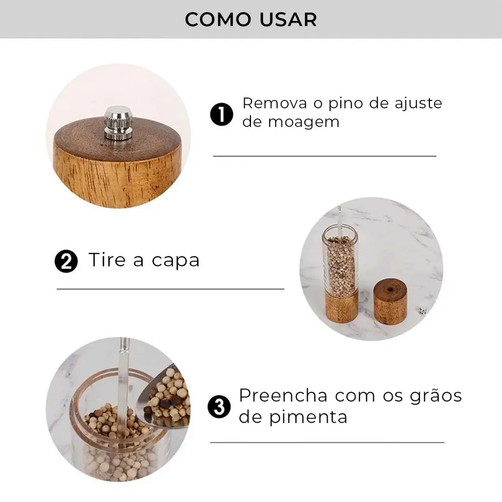 Transforme sua experiência gastronômica com o Moedor de Pimenta Manual de Madeira – um toque de sofisticação e praticidade para o seu dia a dia!