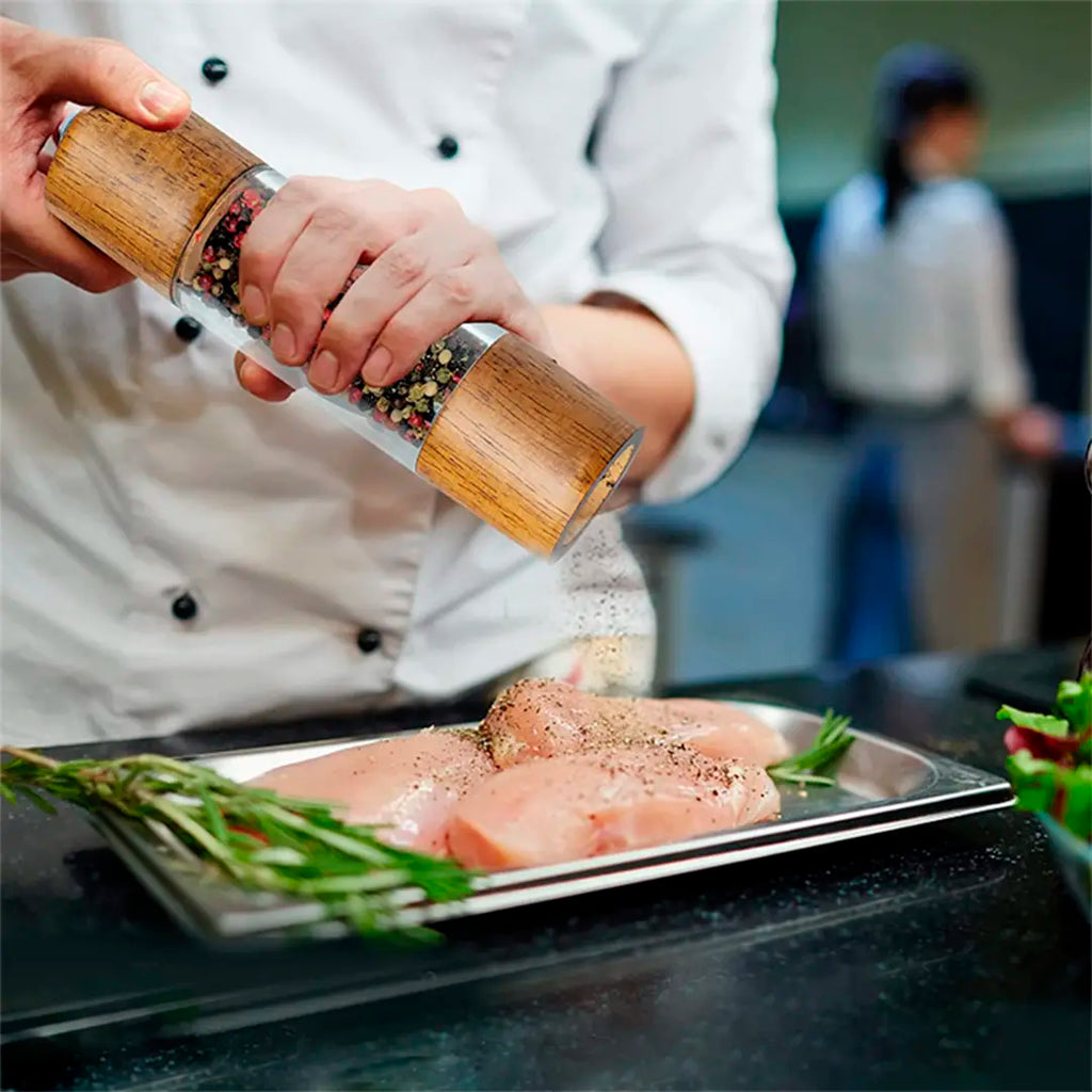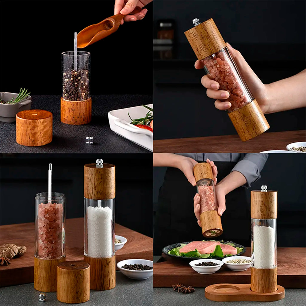 Já imaginou temperar seus pratos com mais estilo e precisão? O Moedor de Pimenta Manual de Madeira combina design sofisticado e alta funcionalidade, sendo perfeito tanto para a cozinha quanto para a mesa. Feito com madeira natural e acrílico resistente, ele adiciona um toque moderno ao ambiente enquanto oferece um ajuste preciso na moagem dos grãos.