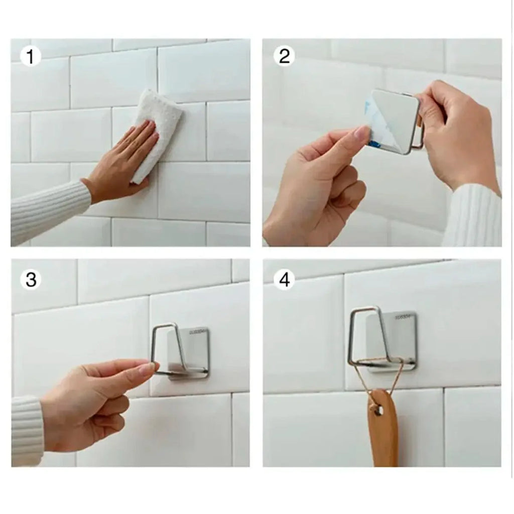 - Instalação simples e rápida: basta limpar a superfície, remover a película protetora do adesivo, pressionar o suporte no lugar e aguardar de 6 a 8 horas antes de pendurar os objetos.