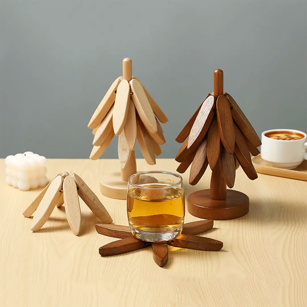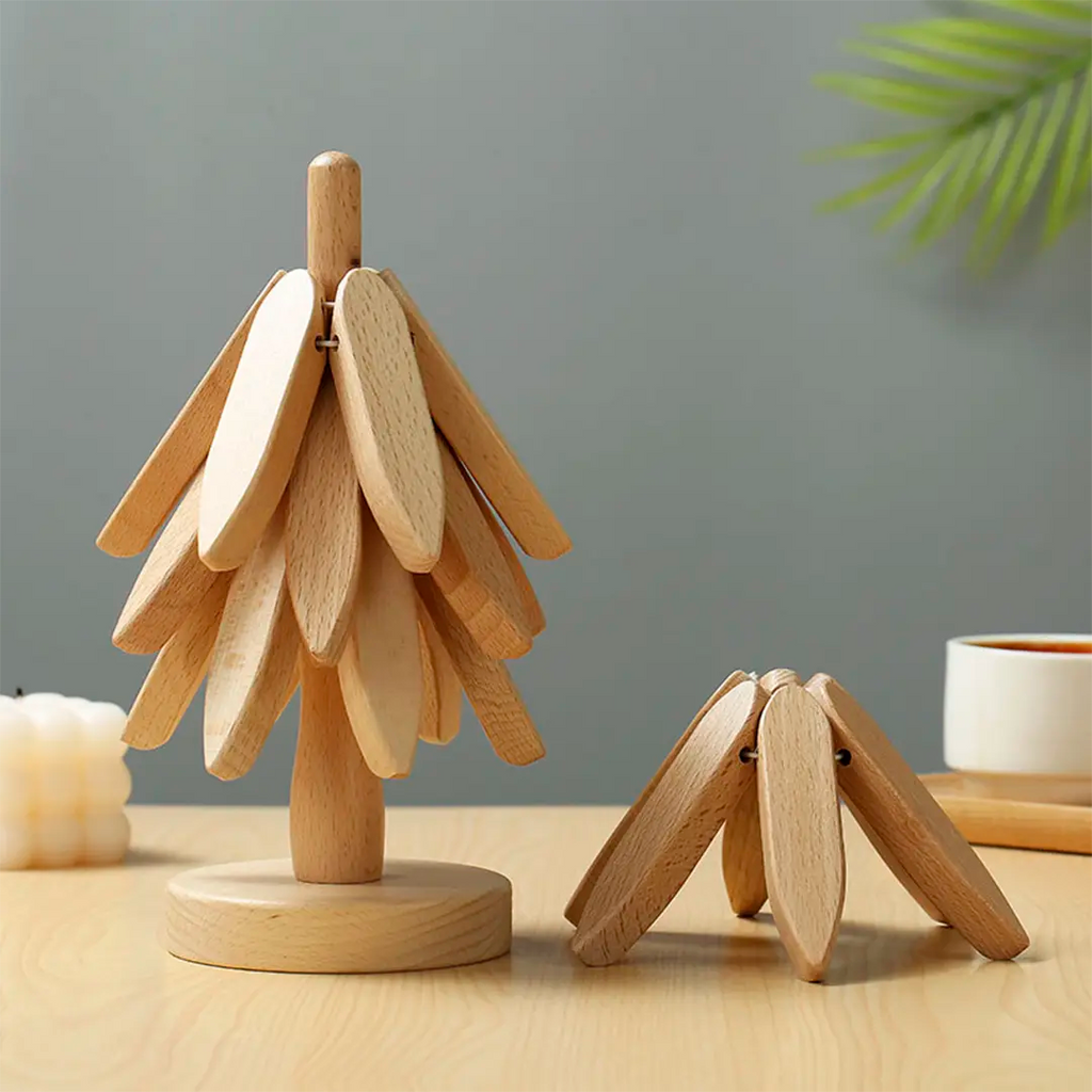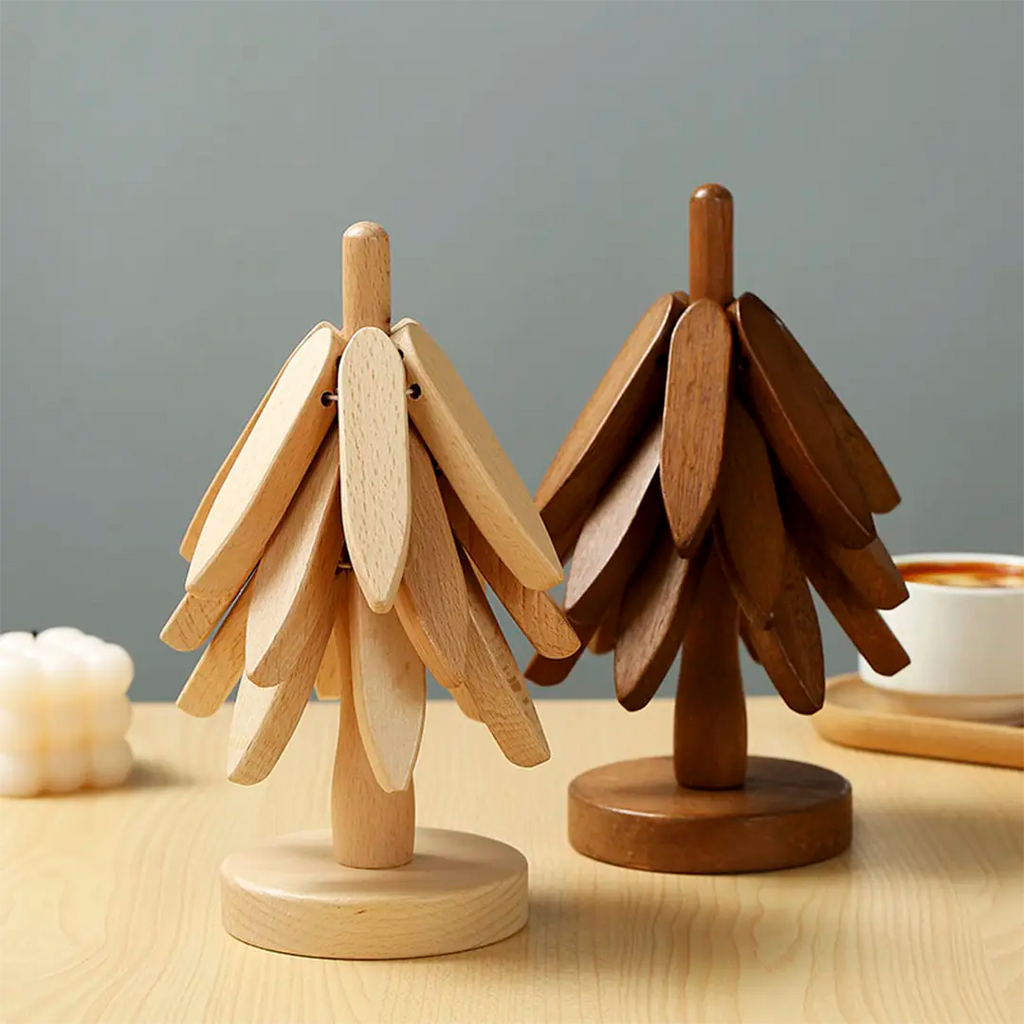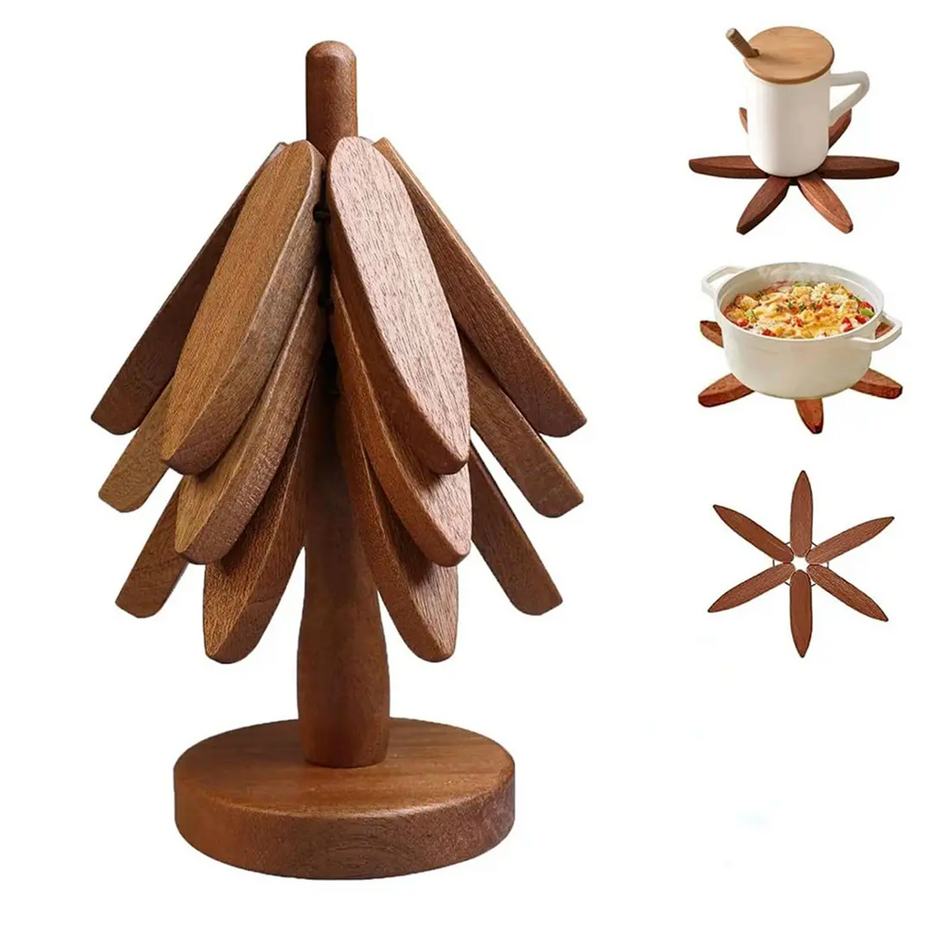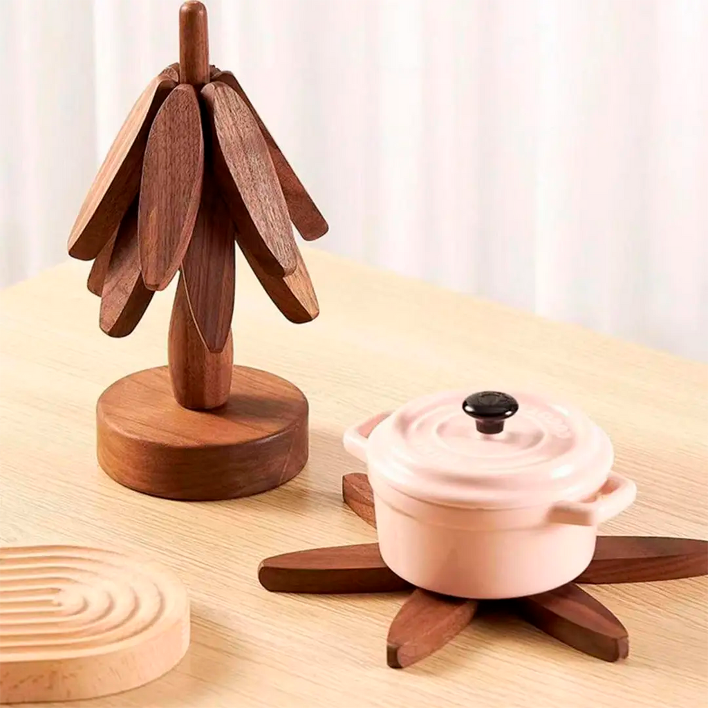 1 Descanso de Panela de Madeira com Suporte ( 3 descansos de panela + 1 suporte)
