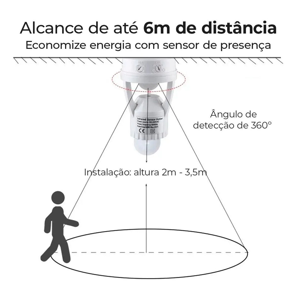- Economia de energia: apaga a lâmpada após um tempo pré-determinado sem movimento.