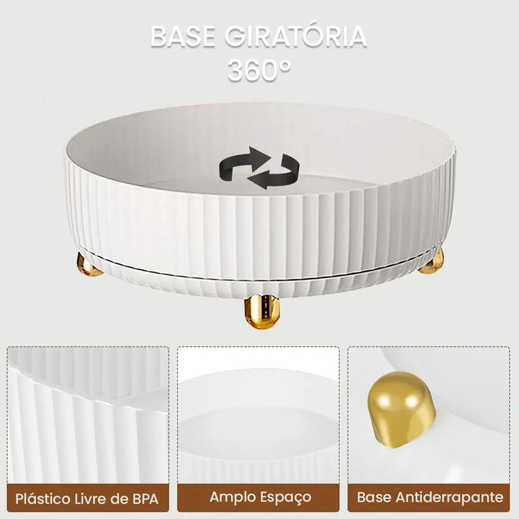 Já imaginou acessar seus itens com mais facilidade e organização? O Organizador Giratório 360° é a solução ideal para manter temperos, cosméticos, maquiagens e muito mais sempre à mão. Com um giro suave e base antiderrapante, ele oferece mais eficiência e elegância para qualquer ambiente.