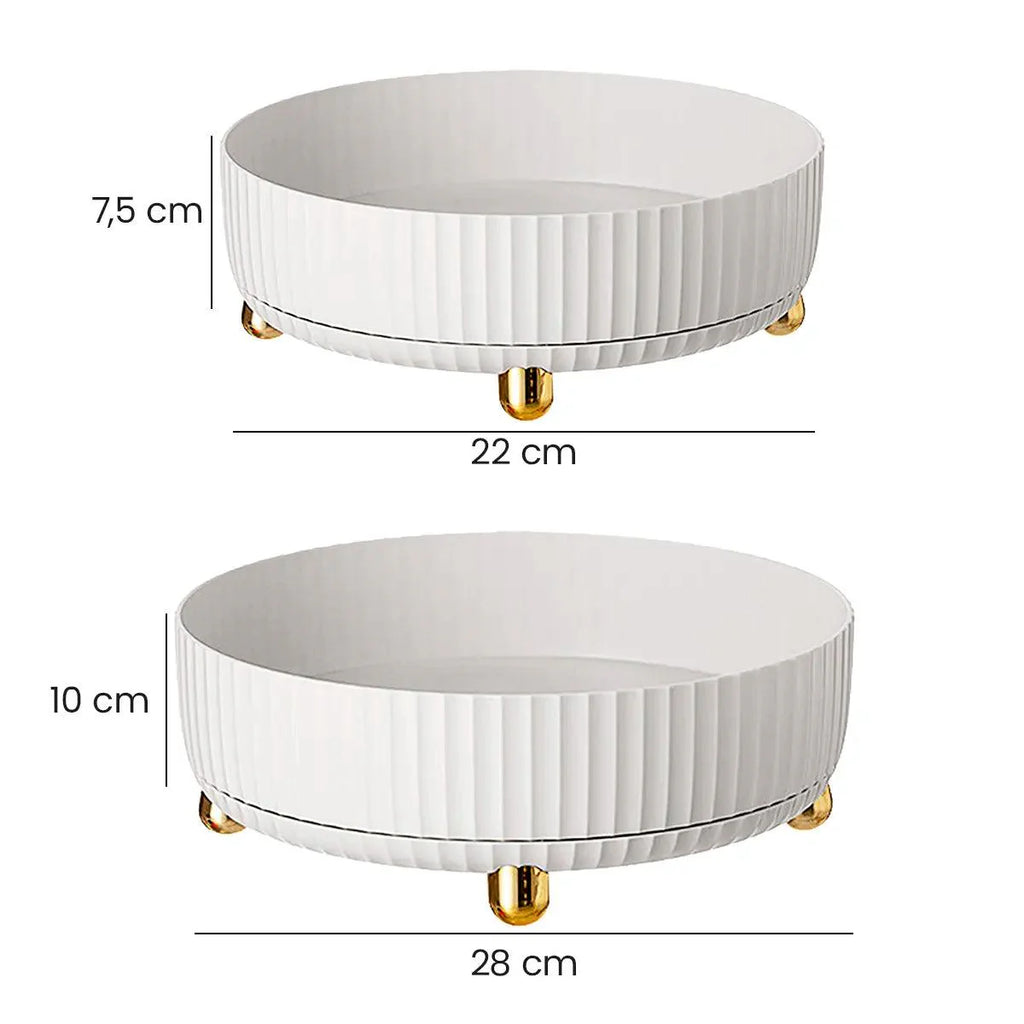 - Versátil e multifuncional: perfeito para cozinha, banheiro, penteadeira ou até como centro de mesa e fruteira.