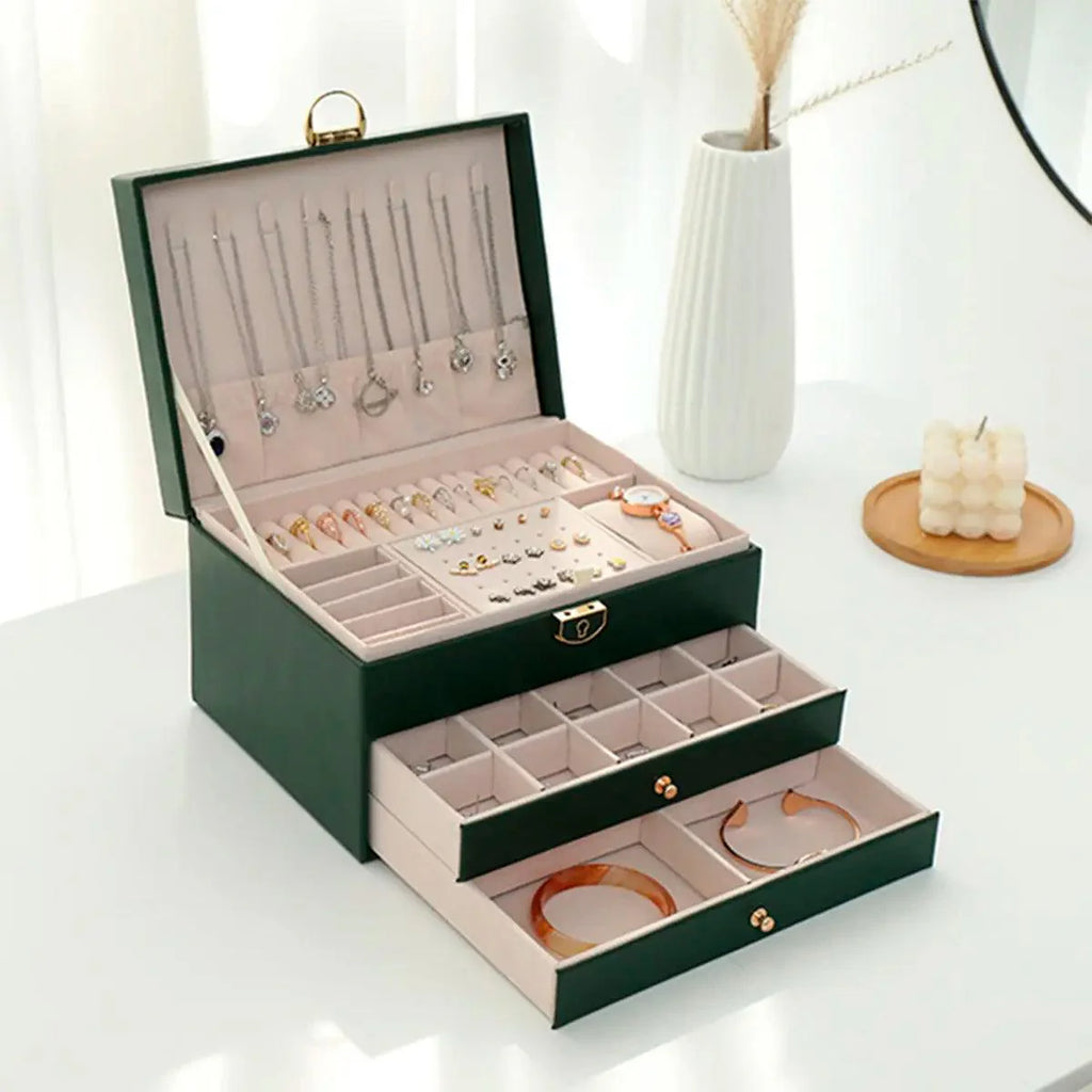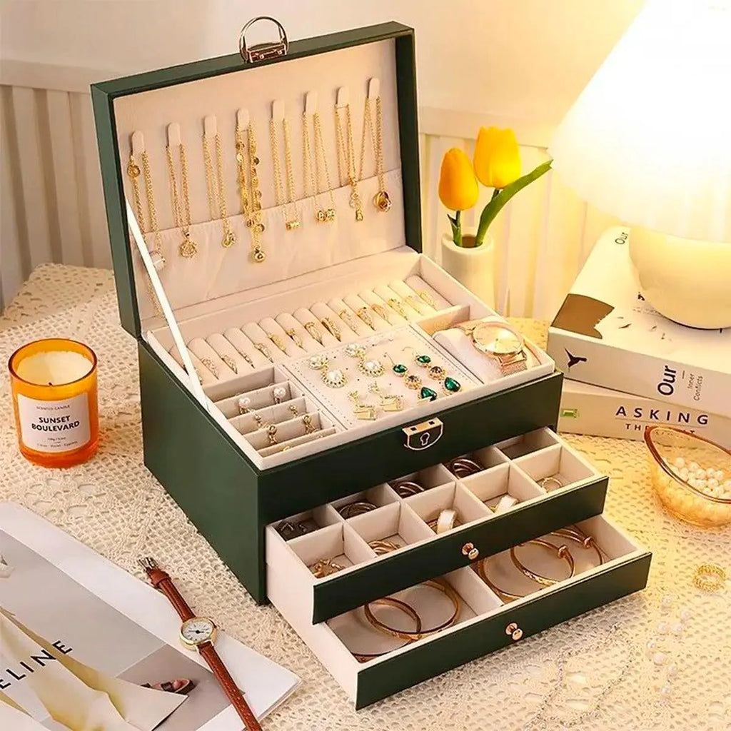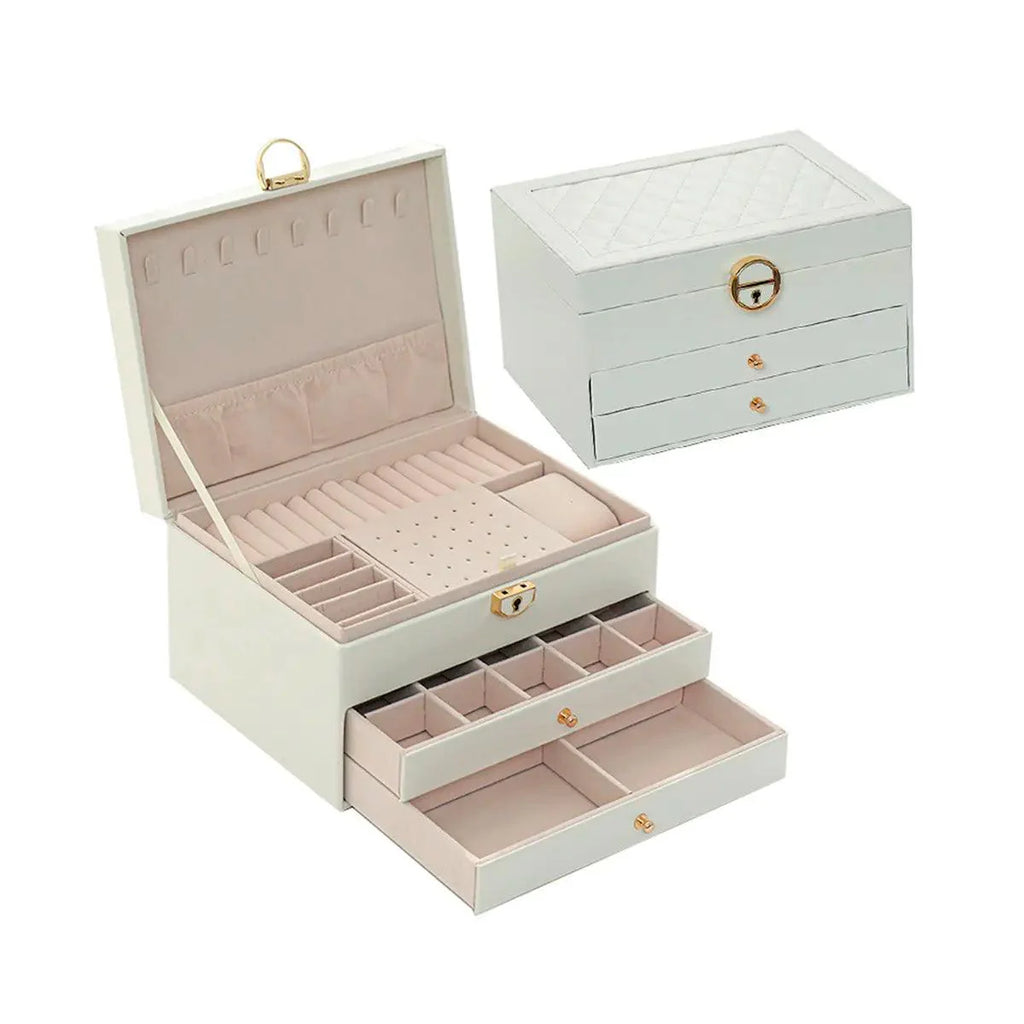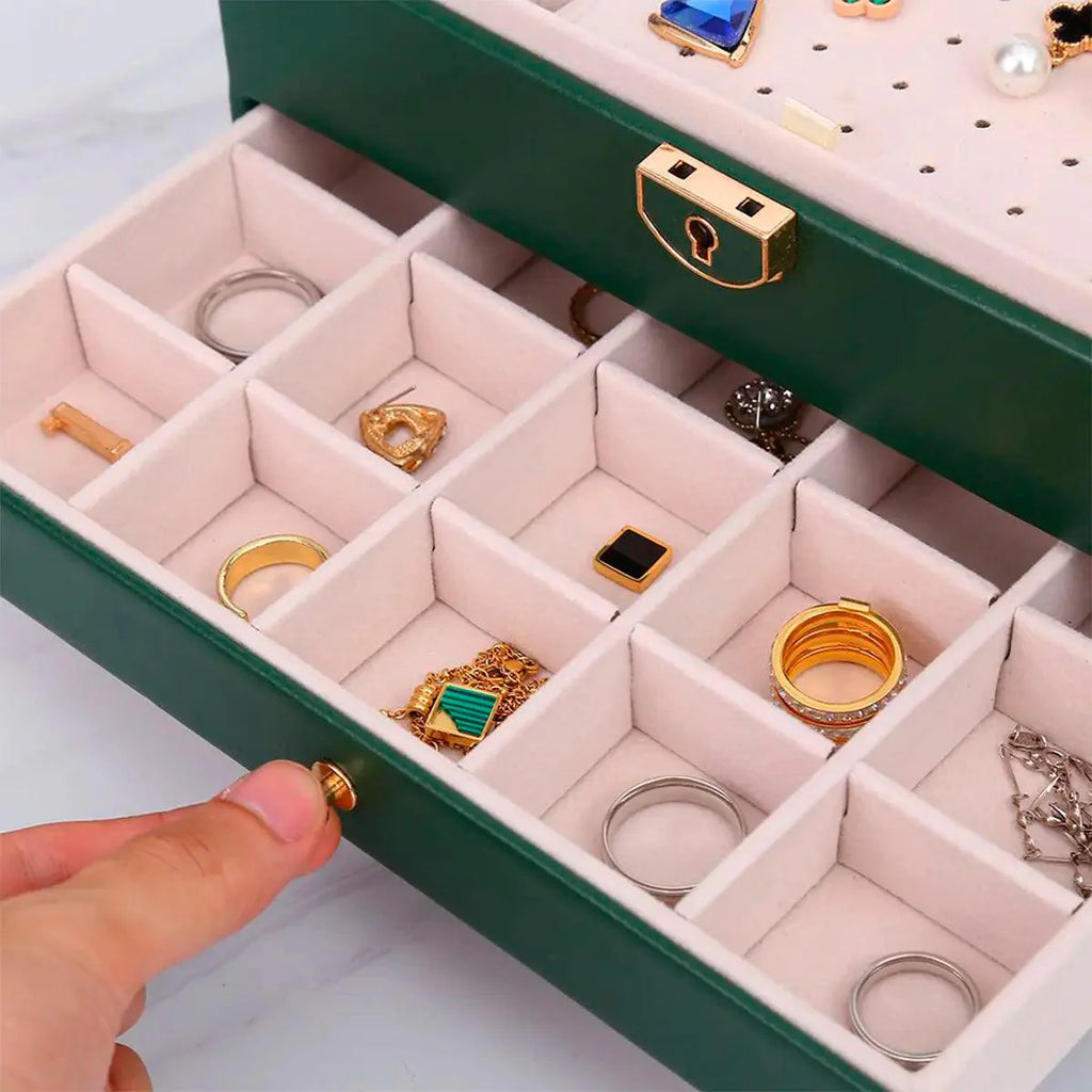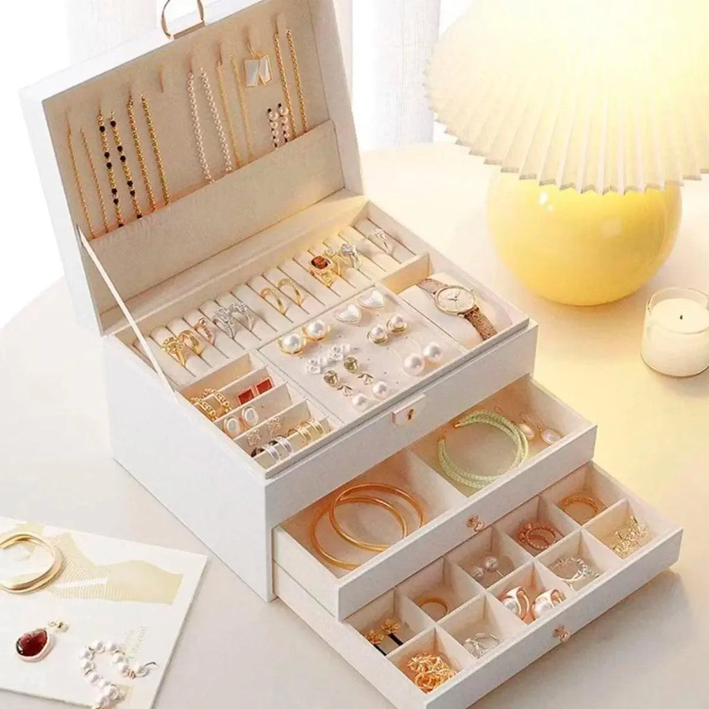 - Múltiplas divisórias: organização eficiente para anéis, colares, brincos e pulseiras.