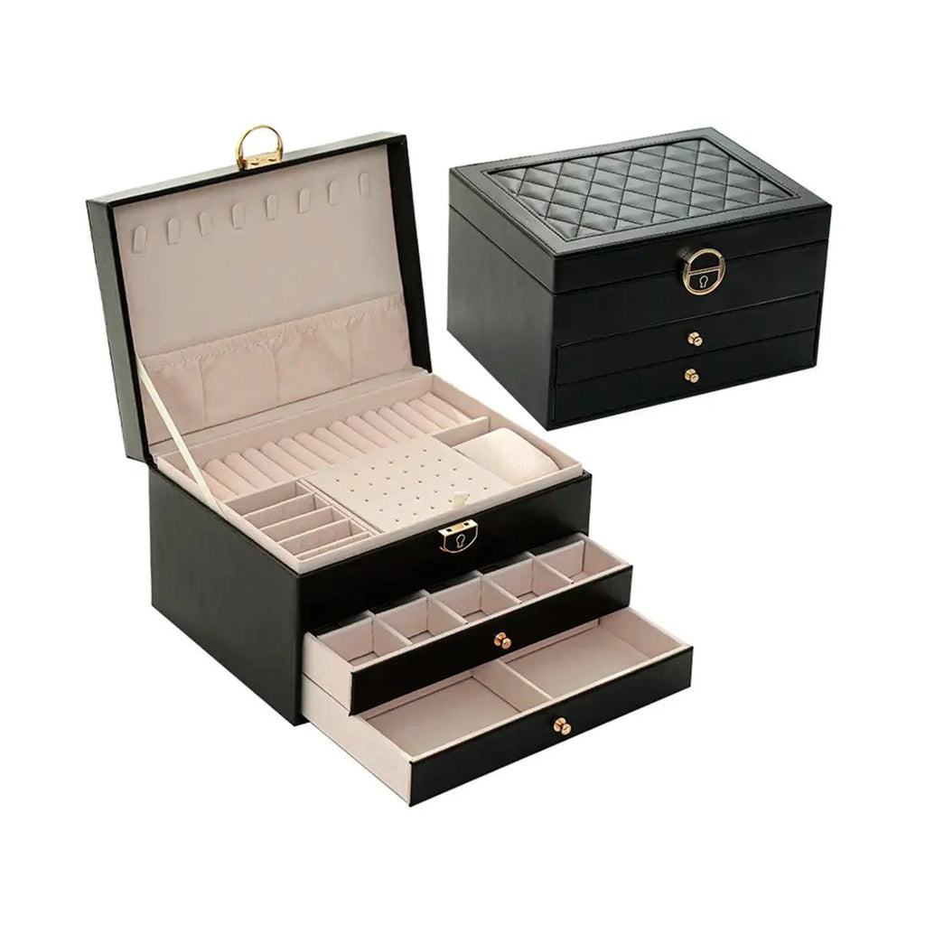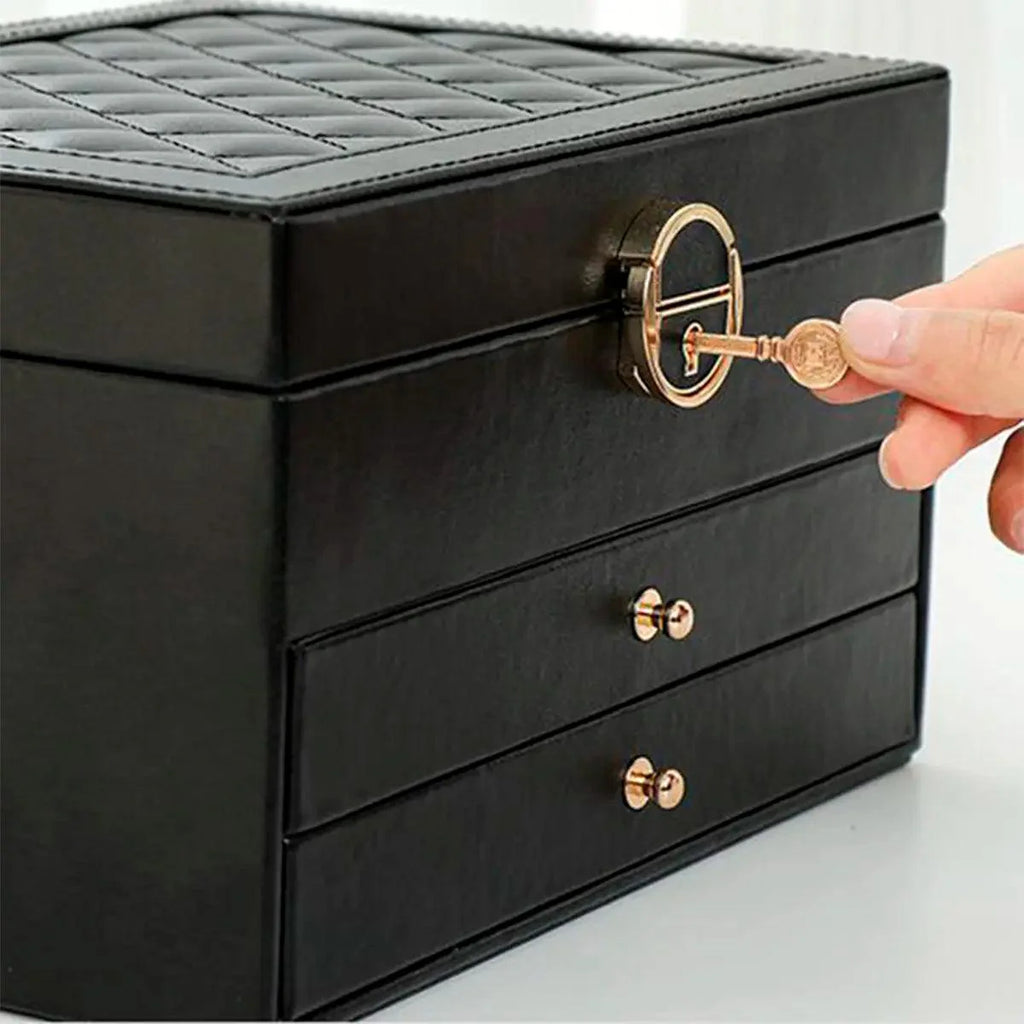 O Porta-Joias Diamond é a escolha perfeita para quem busca sofisticação, funcionalidade e segurança. Feito em couro de alta qualidade, ele oferece várias divisórias e um interior revestido em veludo macio, garantindo que suas peças fiquem bem armazenadas e livres de arranhões. Seu design elegante e divisórias removíveis permitem personalizar o espaço conforme suas necessidades.