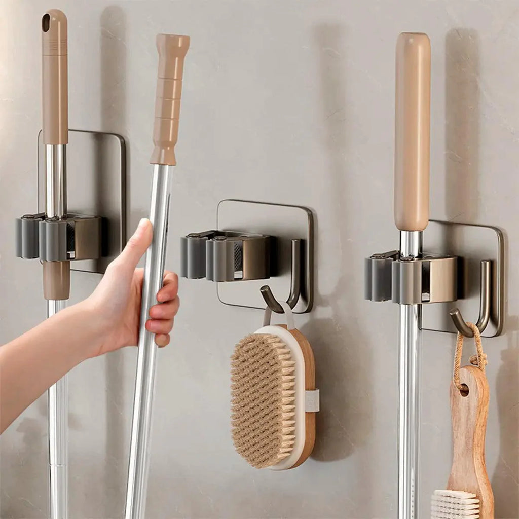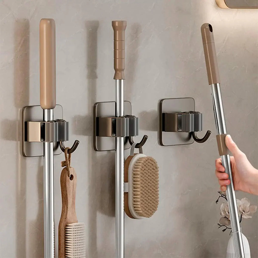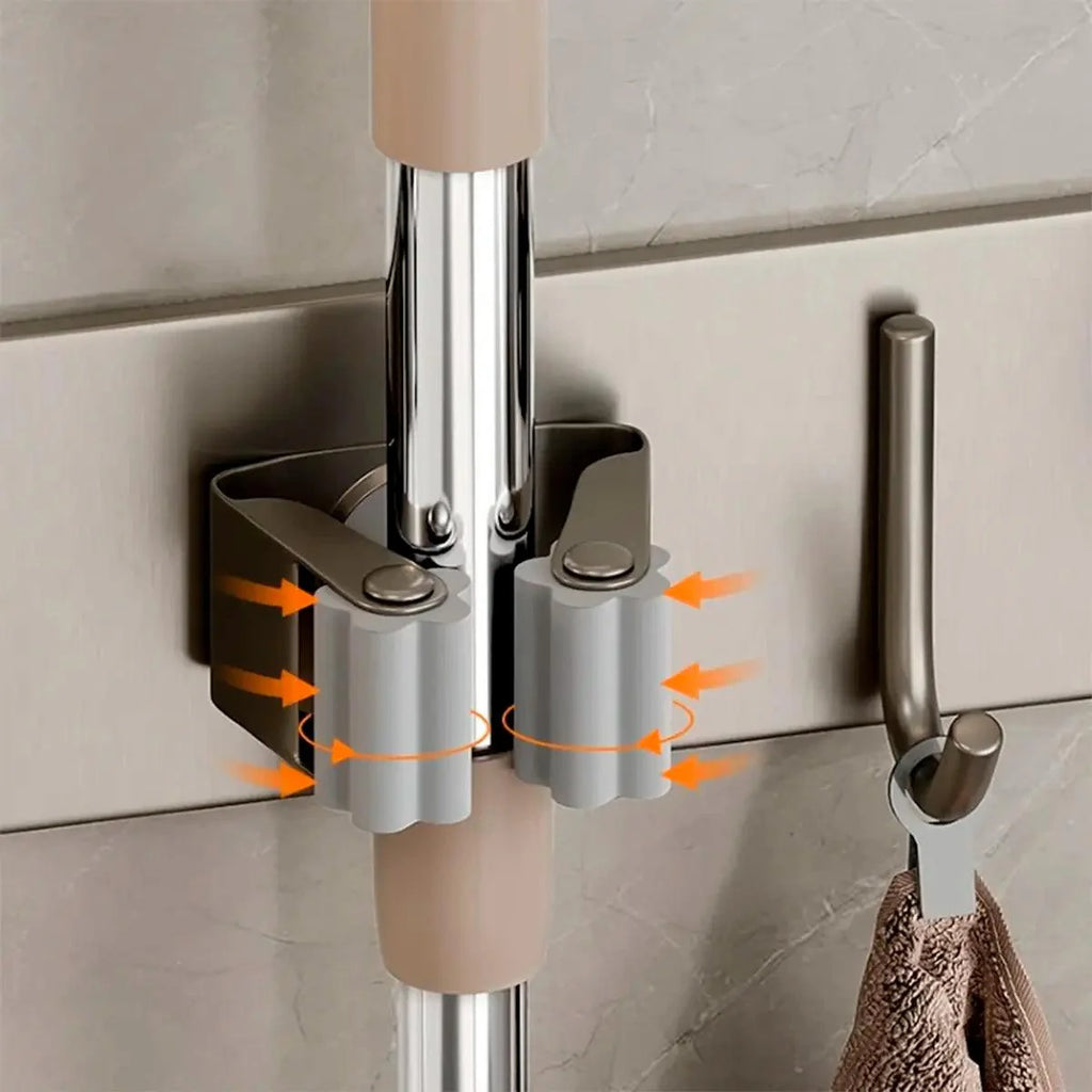1 Organizador em Aço Inoxidável para Vassouras e Rodos